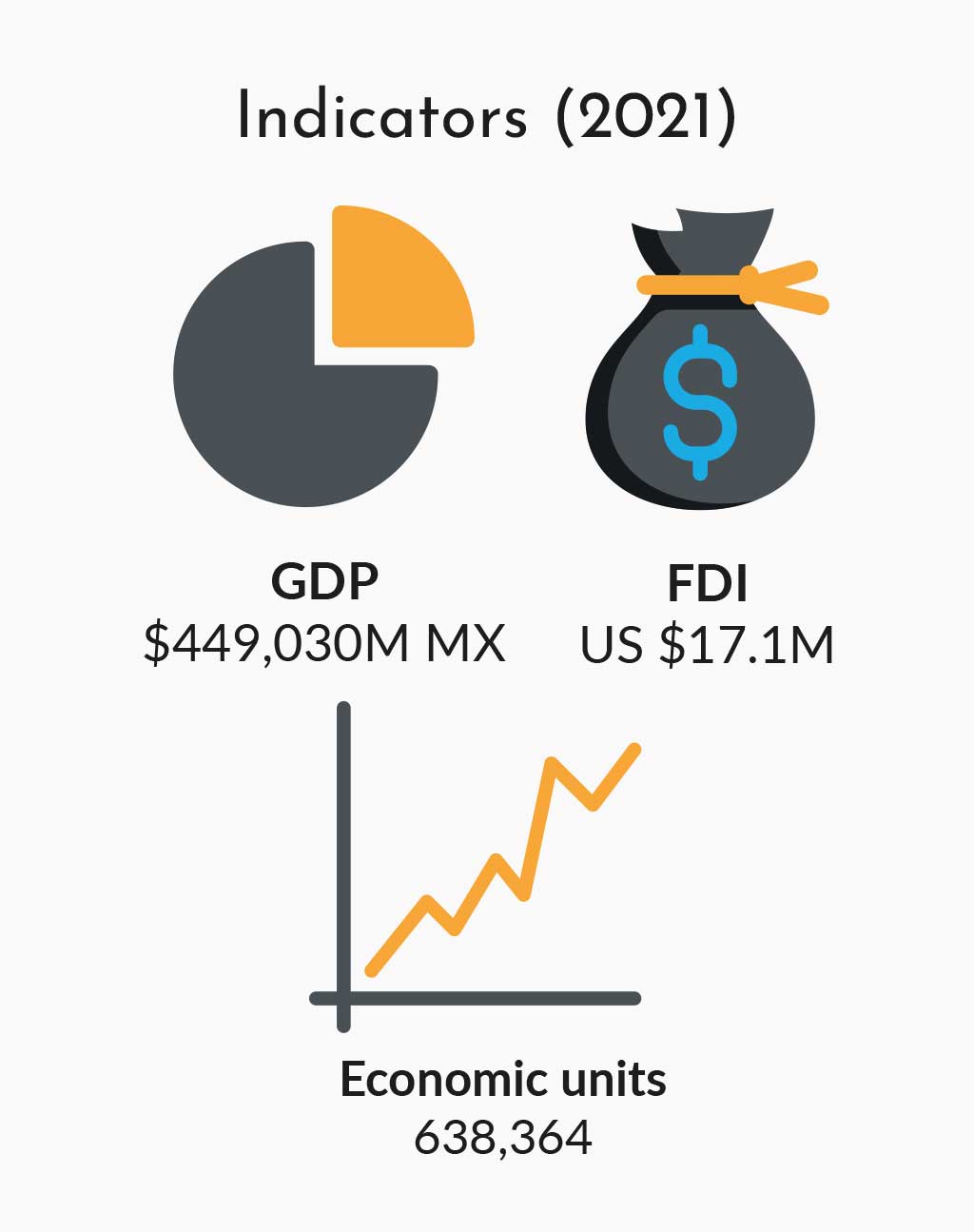 The states that received the most foreign direct investment for the industry were Mexico City (US$47M), Jalisco (US$29.9M) and Guanajuato (US$29.5M).